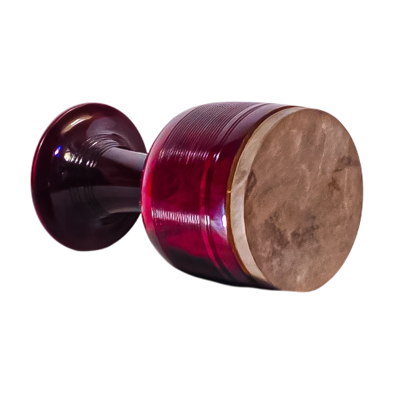 صدای این تنبک شما را شگفت زده خواهد کرد. این تنبک باوجود الگوی تخت و دهانه 27/1 سانتی متری صدای فوق العاده شفاف زیبا و پر حجمی دارد. الگوی تخت این استفاده از آن را برای اکثر افراد راحت و مناسب می سازد. با پوست گوساله و رنگ آمیزی آلبالویی تیره و شیار هایی که برروی بدنه ساز خراطی شده است. سازی زیبا را نظاره گر خواهید بود. تنبکی که اصل ان از عکس هایش زیباتر است.