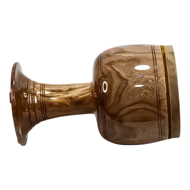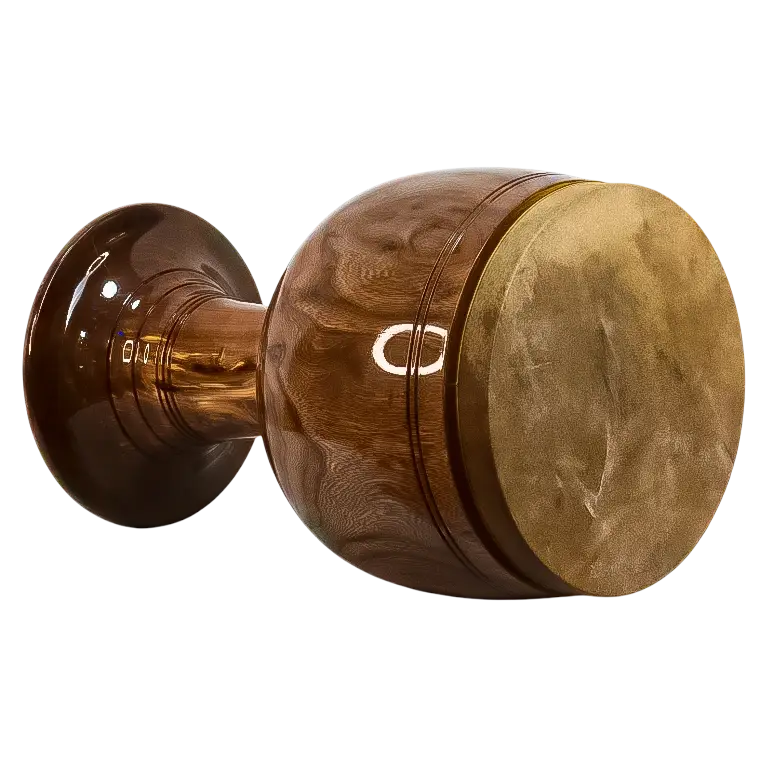 این تنبک، بسیار خواستنی است. نخست الگوی بسیار زیبا و مناسب آن می باشد، بدنه اصلی ساز با قوسی ملایم و کشیدگی متناسب یک الگوی زیبا و نیمه جامی را نشان ما می دهد که تناسب بسیار زیبایی با بخش کشیدگی پوست ساز پیدا کرده، دهانه 27/7 سانتی متری آن یعنی ابعاد یک تنبک حرفه ای و دهانه ای که مورد علاقه اکثر نوازندگان حرفه ای می باشد.